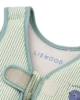 - Warnings/Safety Guidance: Will not protect against drowning. Use only under constant supervision. Do not allow children to bite or chew the product — small pieces may pose a choking hazard. Ensure product is securely fastened before use. Closes at the front with zipper and Velcro closure; strap fastens between legs with a click buckle. Always check for tears, rips, or punctures before use.